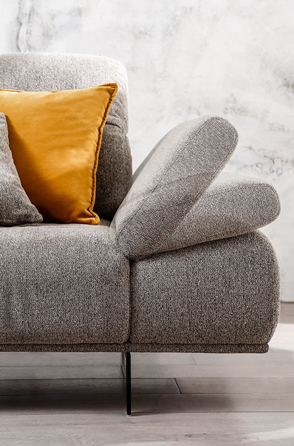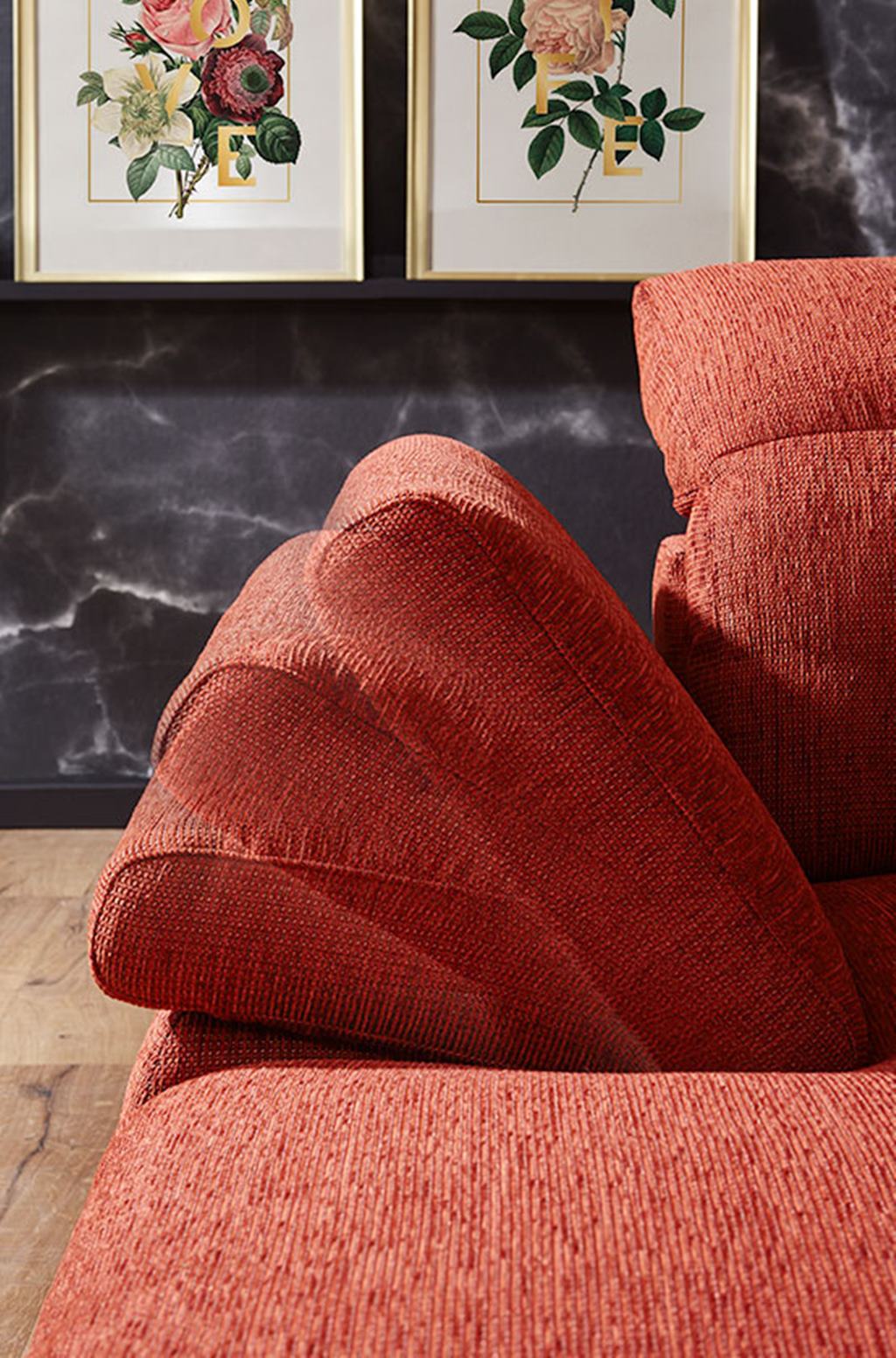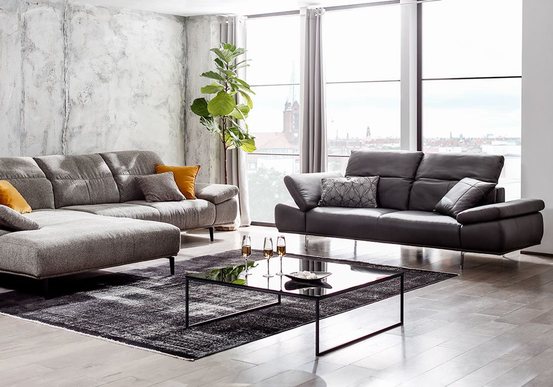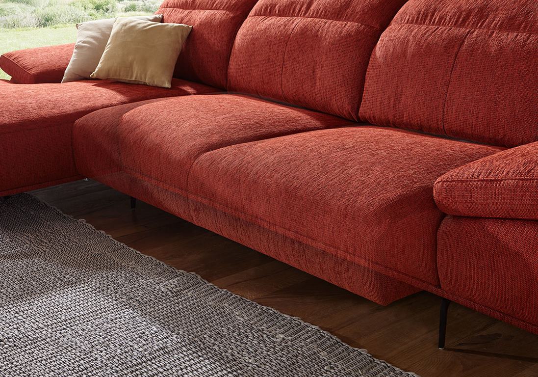 Už na prvý pohľad budete mať pocit, že si do nej musíte sadnúť. Táto veľmi ležérna a extra široká sedacia súprava je stvorená na leňošenie. Mäkučká a zároveň cítite kvalitnú pružnosť a pevnosť. Je to dané tým, že sedák je položený na vlnovcových pružinách, ktoré dodávajú vysokú trvácnosť a dynamiku. Samotný sedák je tvorený zmesou polyesterových vláken a penových tyčiniek. Táto zmes je plnená do komôrok aby sa predišlo migrácii do strán. Zvlnenie poťahu je pri tejto sedacej súprave normálne a dotvára ležérny tvar. Chrbtové vankúše sú tiež plnené danou zmesou. Samotné opierky aj sedáky sú extra široké a tým dodávajú pocit luxusného komfortu. Opierky chrbta sú tiež aretačne nastaviteľné do rôznych uhlov. Podrúčky je tiež možné za príplatok polohovať.